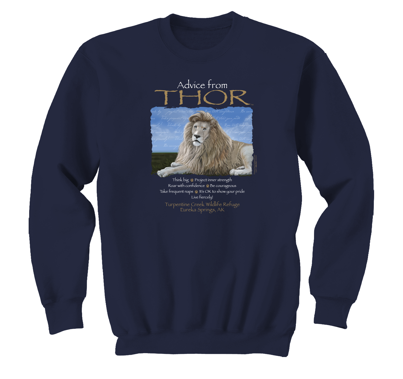 This cozy long sleeve tee features Thor the White Lion dispensing his sage advice in bold, eye-catching design. Crafted from 100% soft cotton and weighing a substantial 5.3 oz, it's built for comfort and durability through countless adventures.
