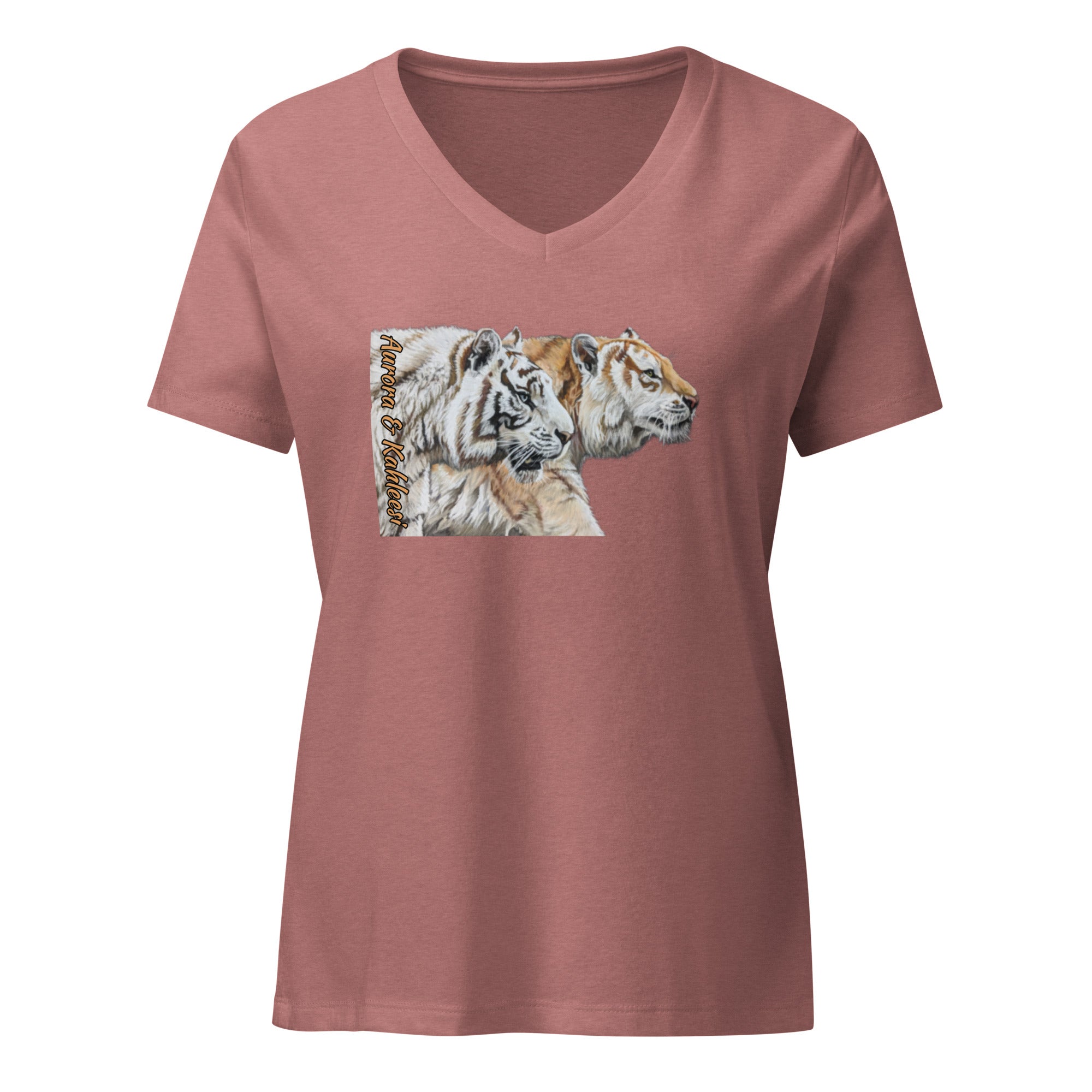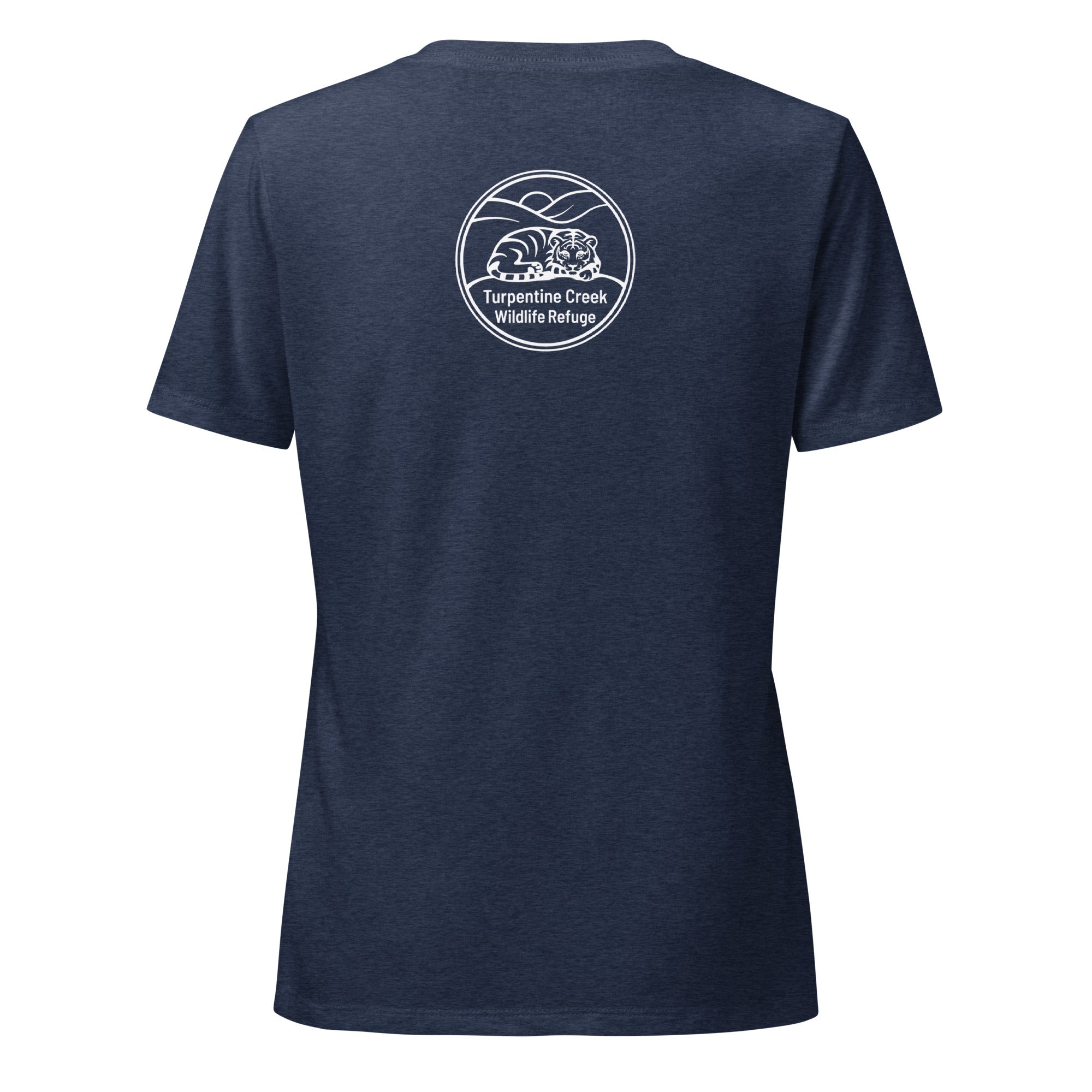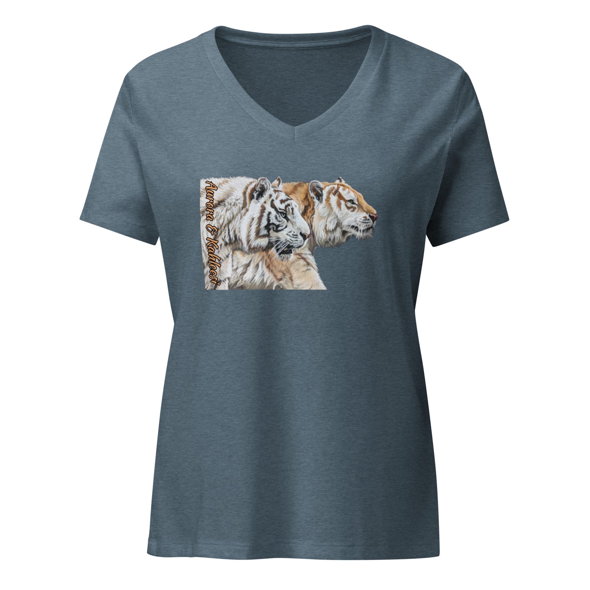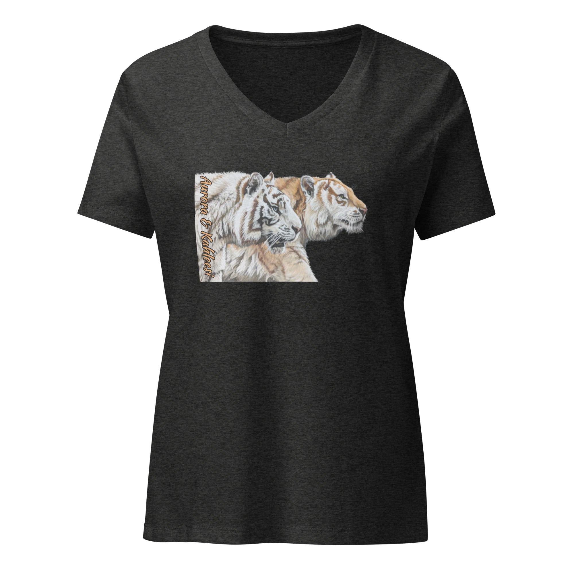 Embrace ultimate comfort with this women’s 4.2oz/yd V-neck t-shirt. Its soft fabric and relaxed fit make it ideal for a polished everyday look, with the custom image of tigers Aurora & Khaleesi  on the front and the logo on the back show your support of the refuge.