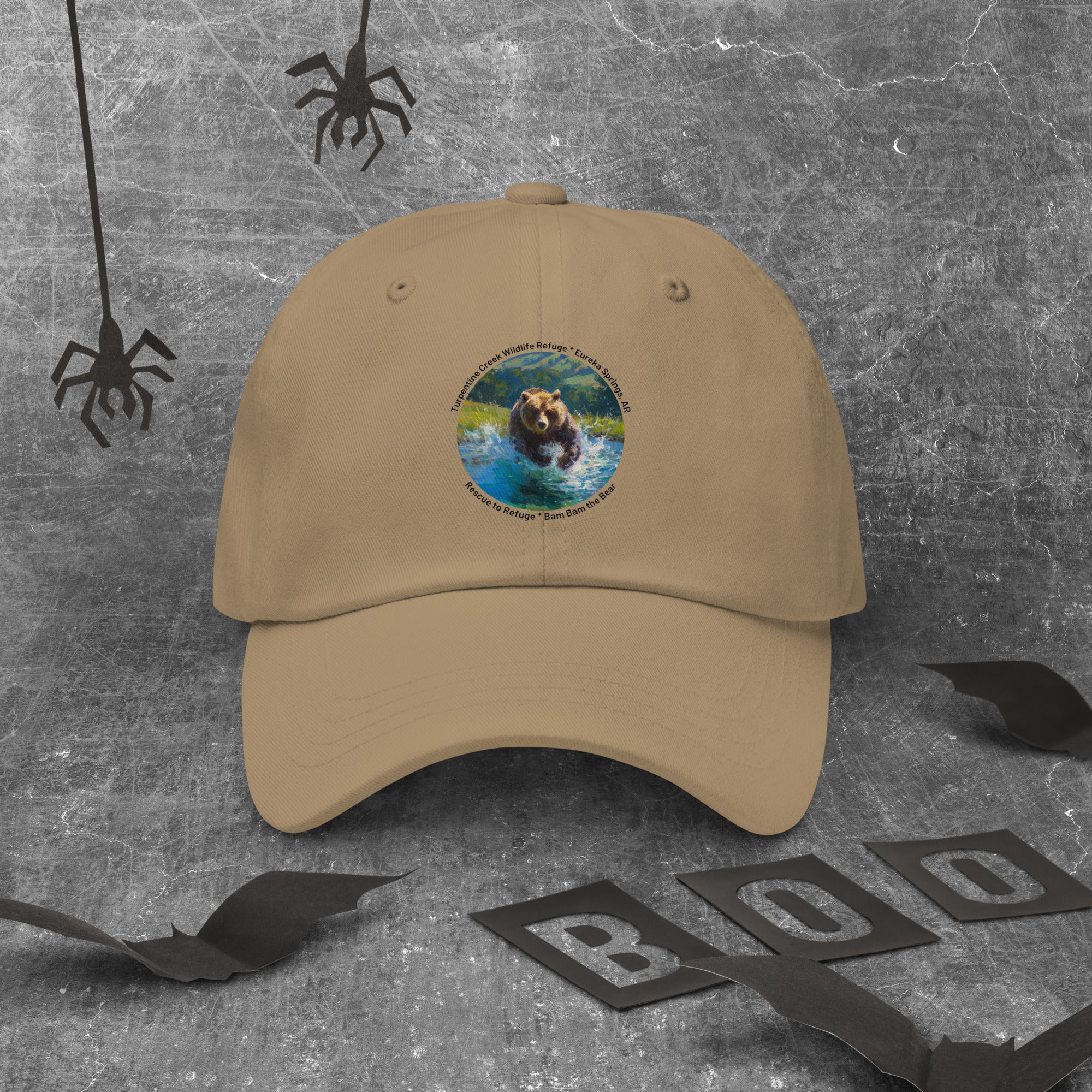 Dad hats aren't just for dads. This one features our exclusive BamBam bear watercolor design on a low profile hat with an adjustable strap and curved visor.